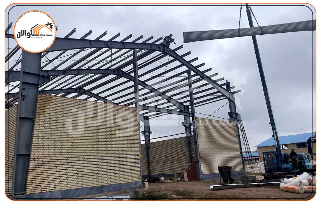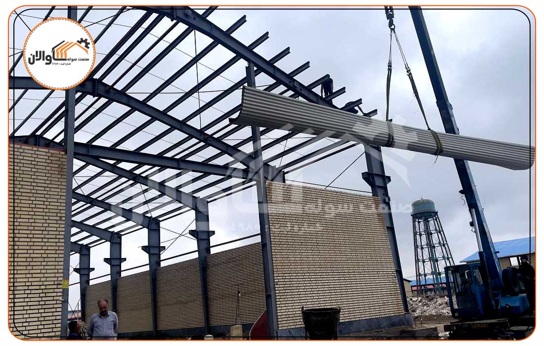 اجرای پوشش سقف سوله با ورق 50 هفت الماس ، توری 9 کیلویی گالوانیزه گرم و پشم شیشه D14